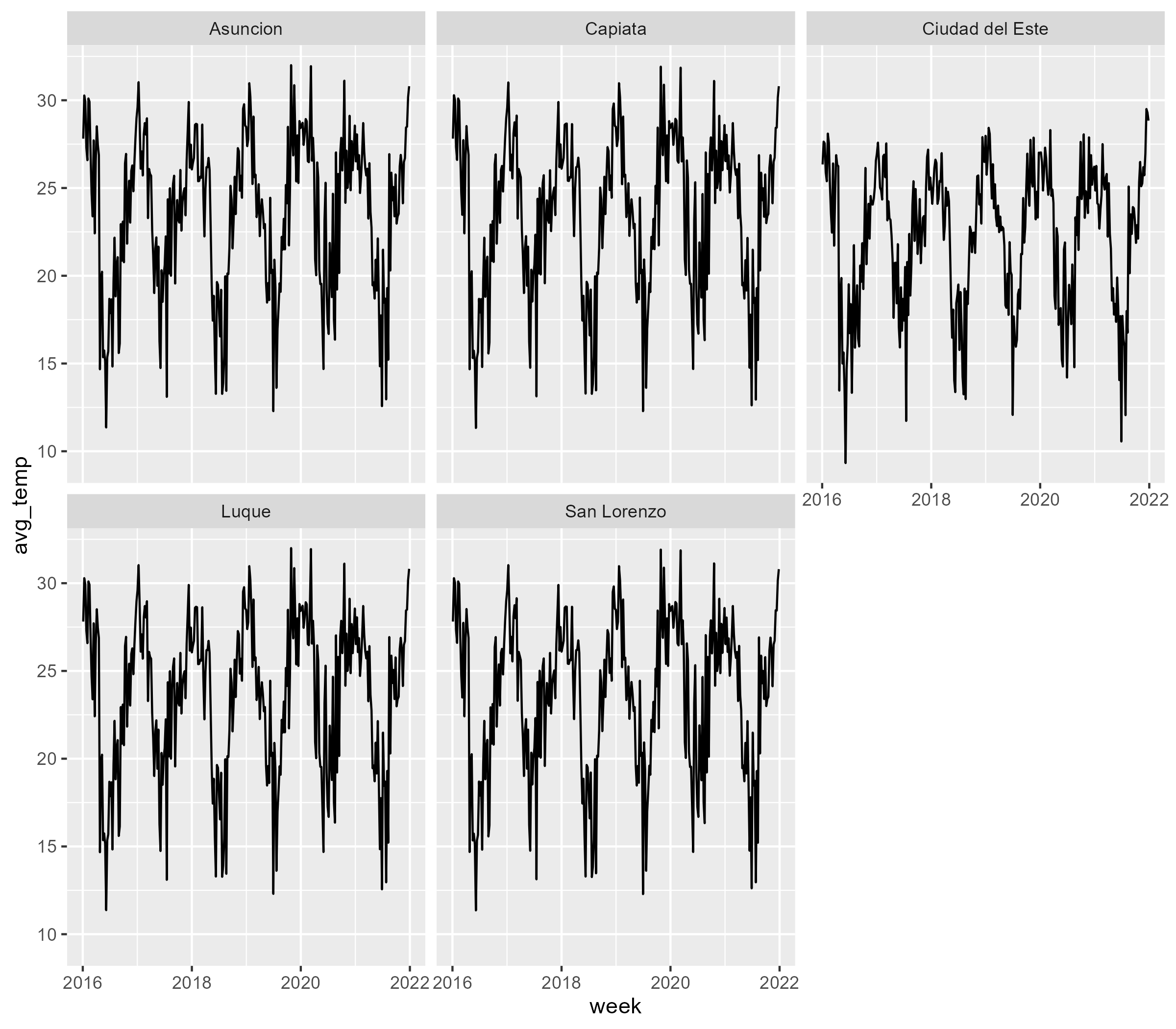 weeks of temperature data for the cities of Asuncion, Capiata, Ciudad